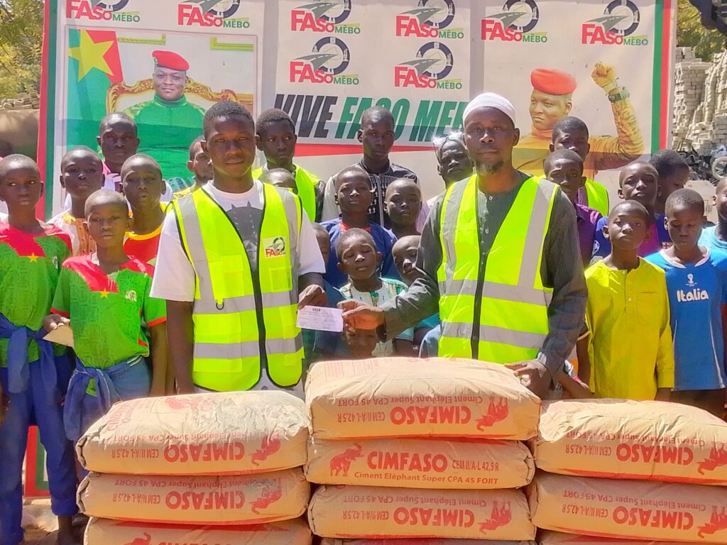 Dans un esprit de solidarité et d’engagement pour le développement national, ils ont offert une tonne de ciment au Grand Chef du groupe Faso Mêbo et ont participé activement aux travaux pratiques aux côtés des membres du groupe Faso Mêbo. Cette initiative illustre les valeurs de discipline, d’entraide, de civisme et d’amour de la patrie que promeut l’association.
